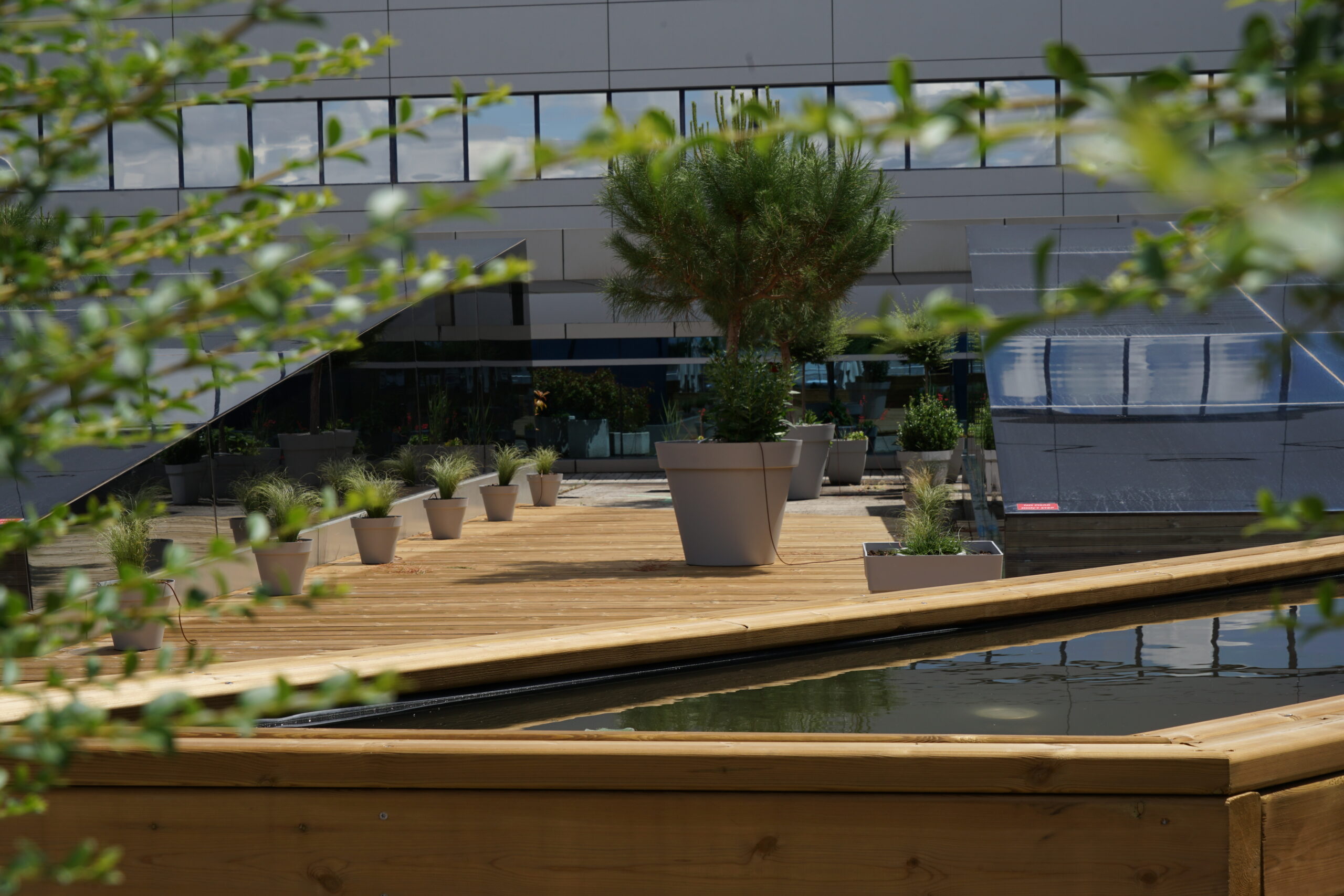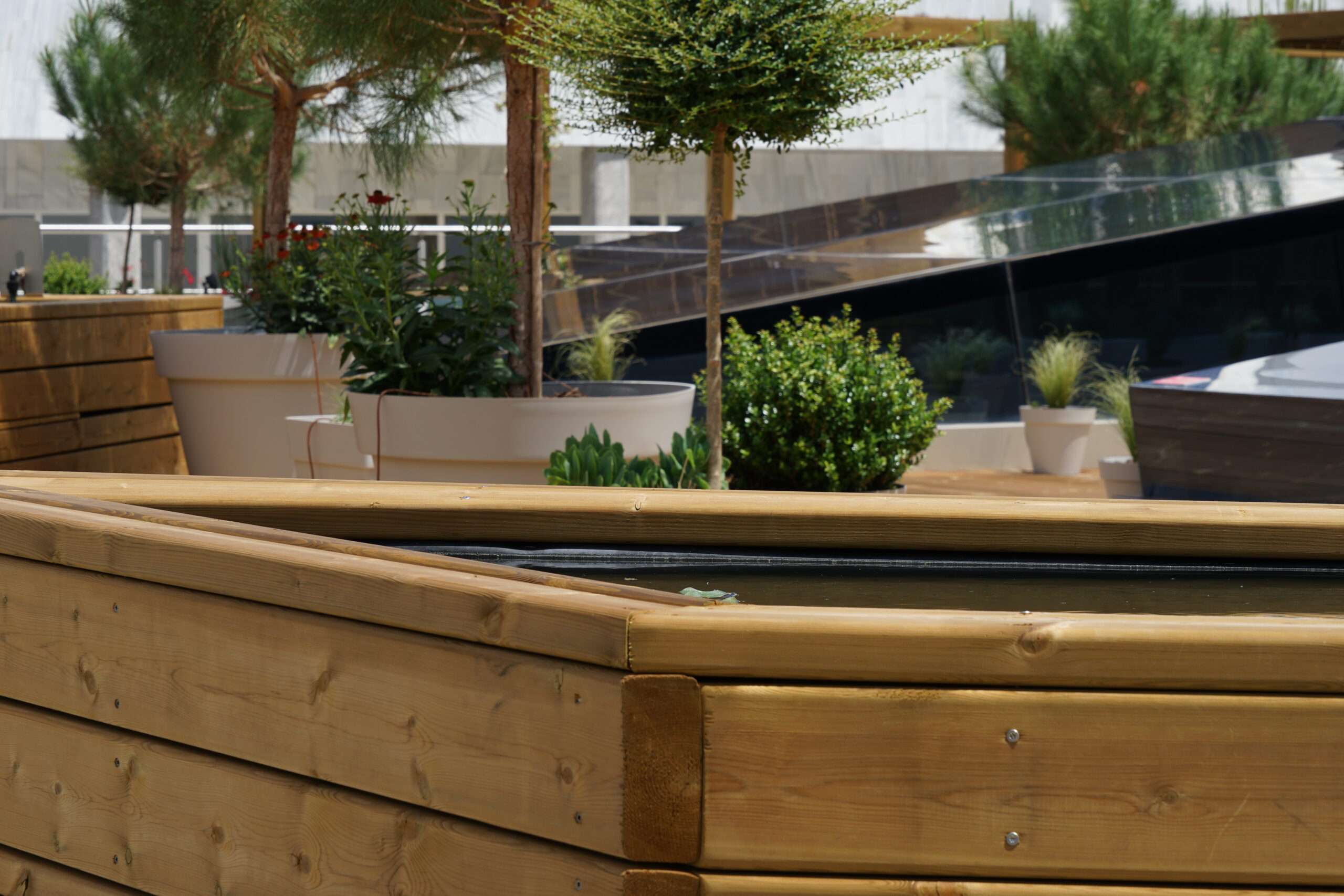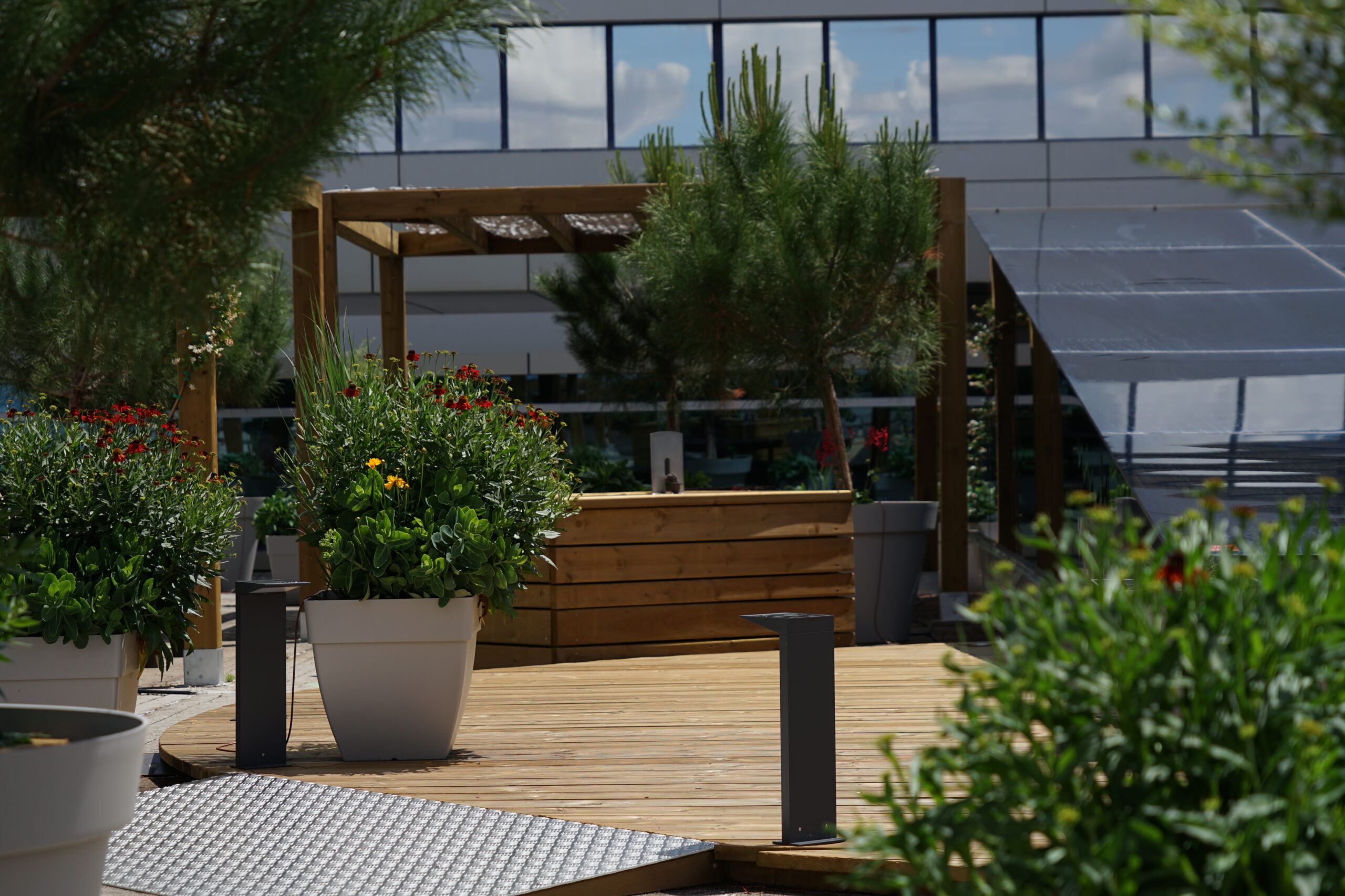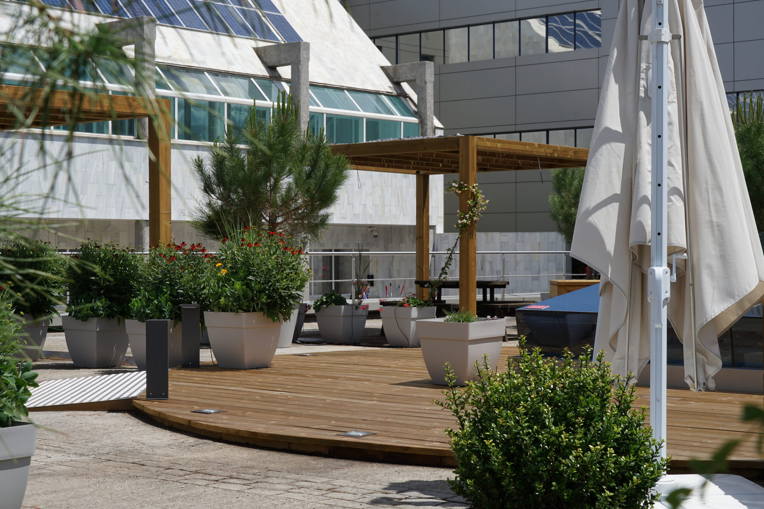 Diseño de una terraza de 800m2 para realizar eventos de la compañía al aire libre y como zona de relax para los trabajadores.