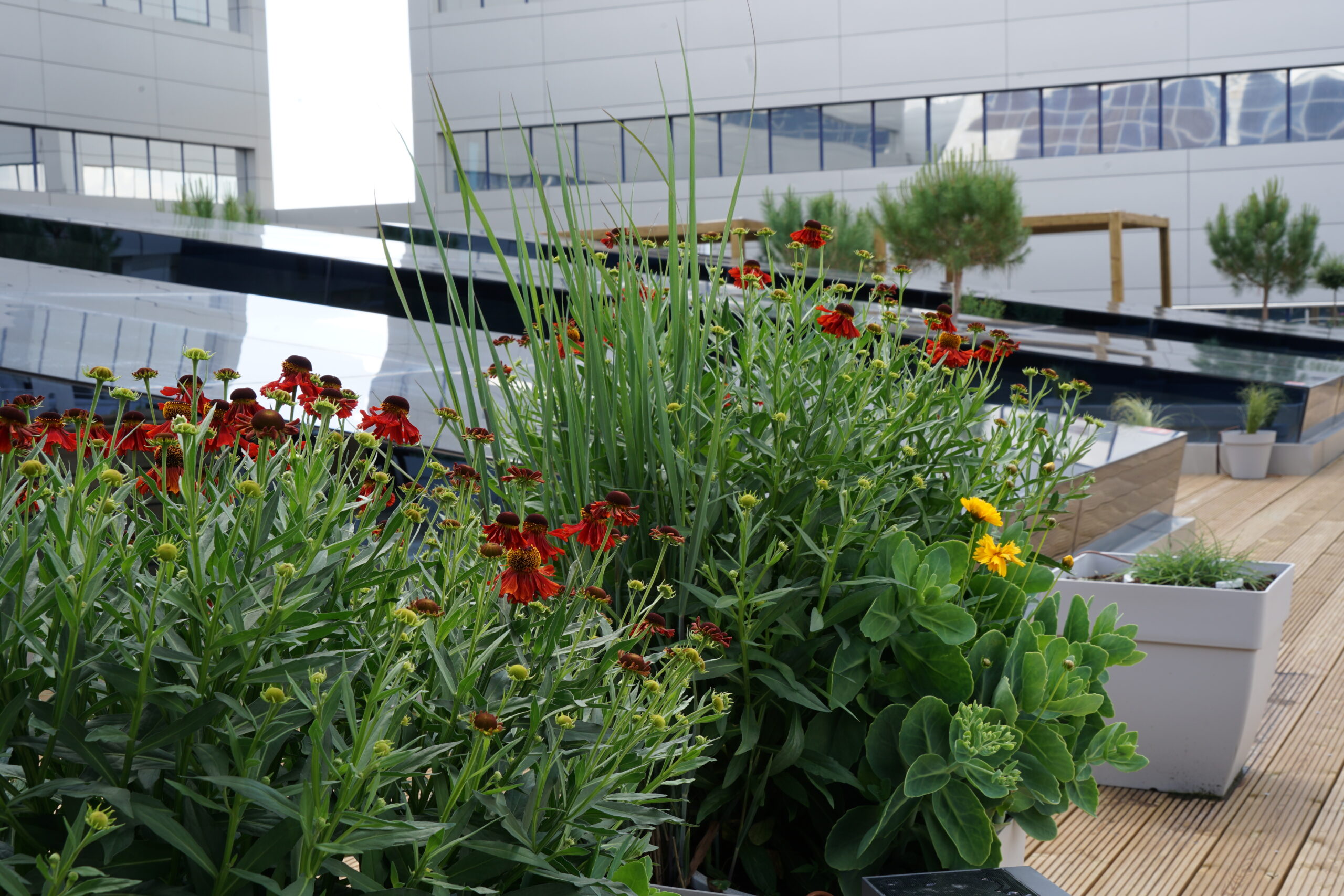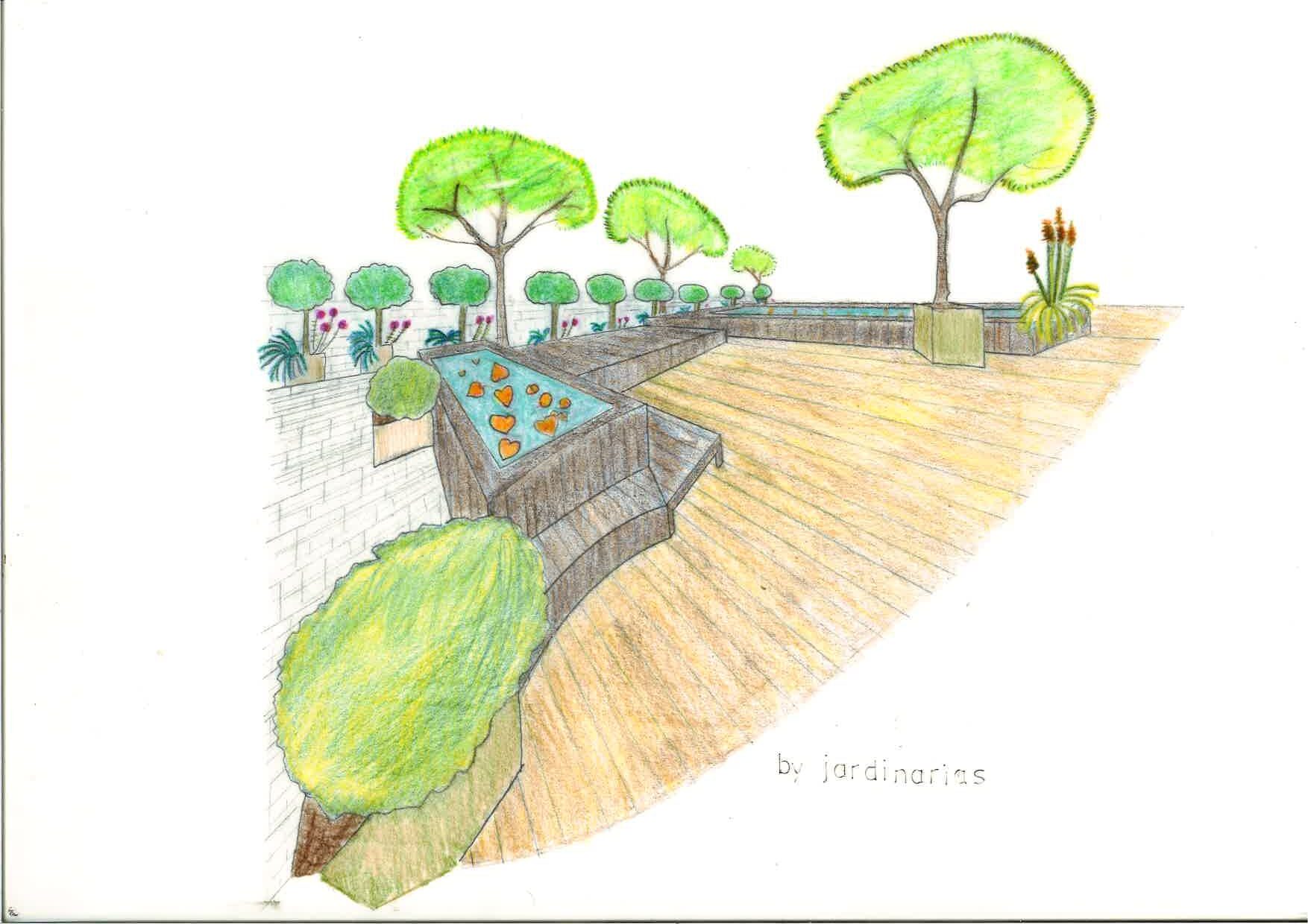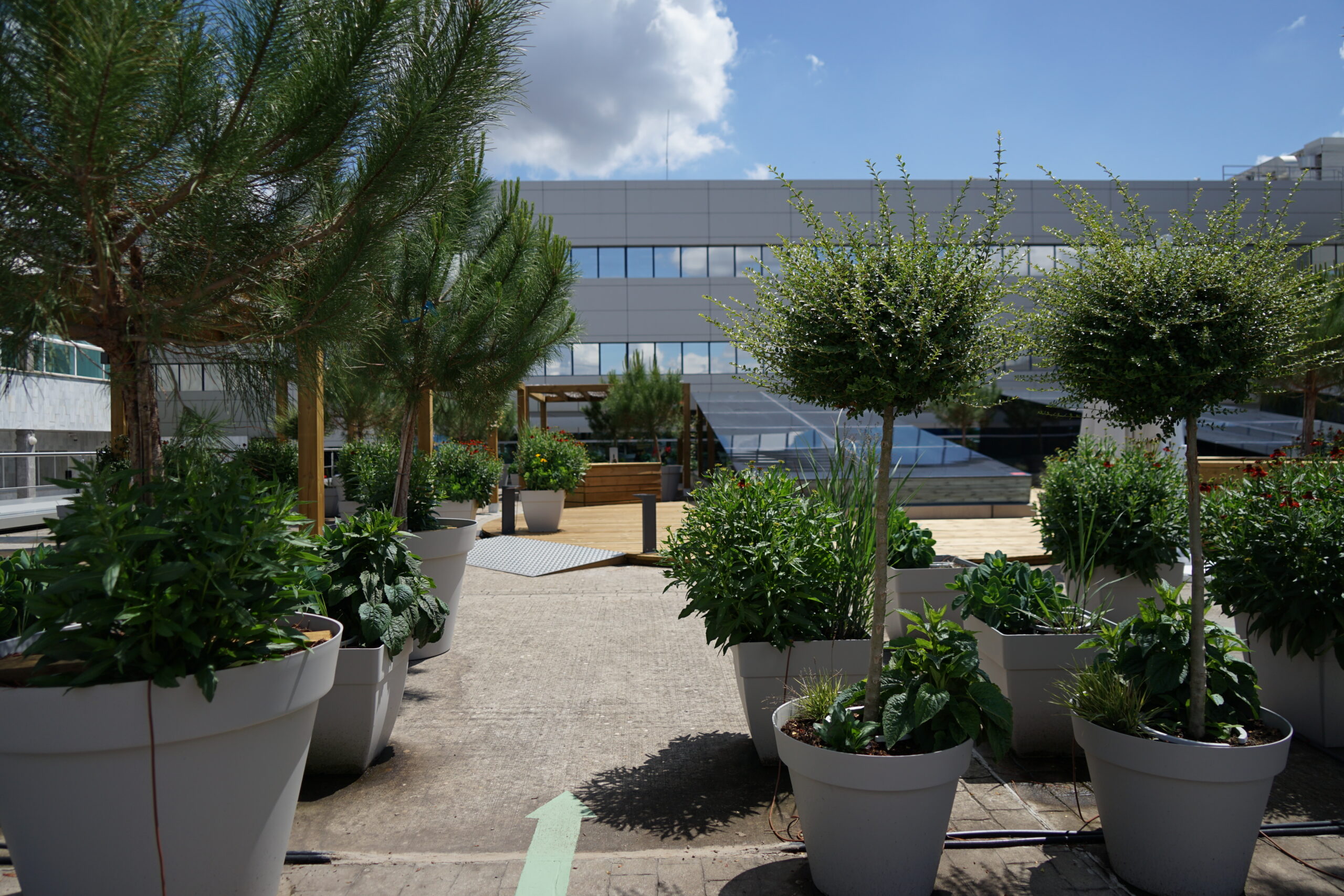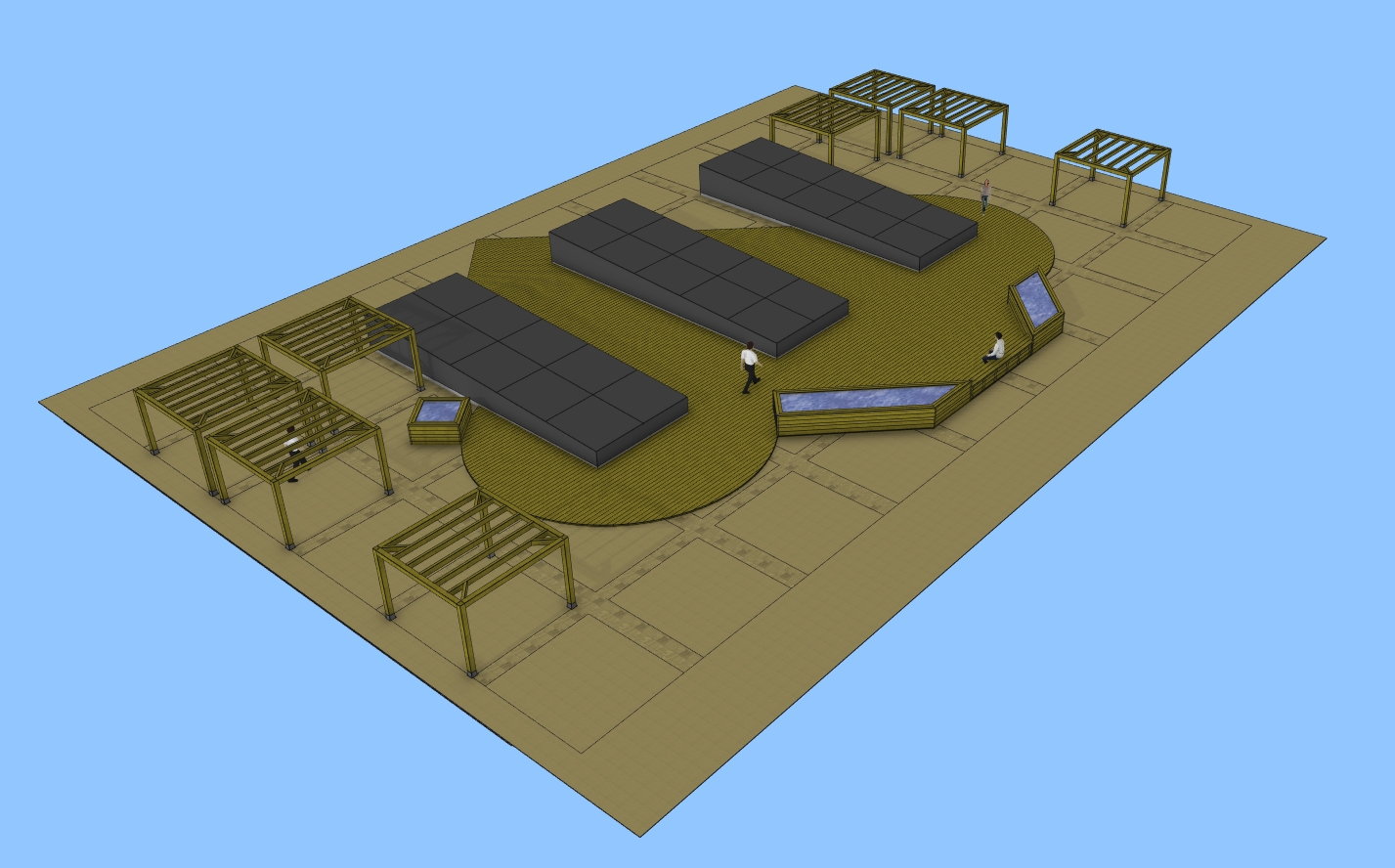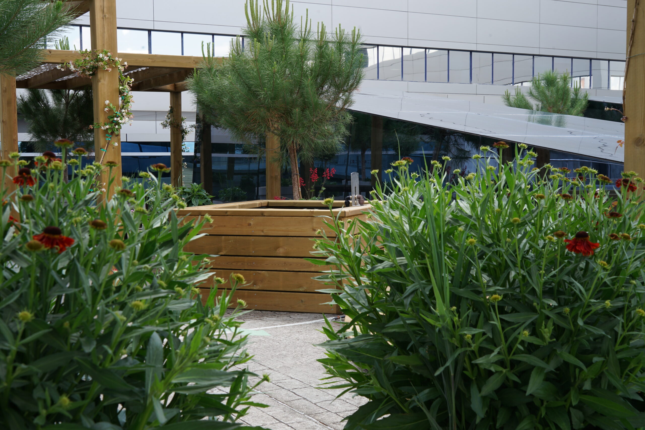 Diseño de una terraza de 800m2 para realizar eventos de la compañía al aire libre y como zona de relax para los trabajadores.